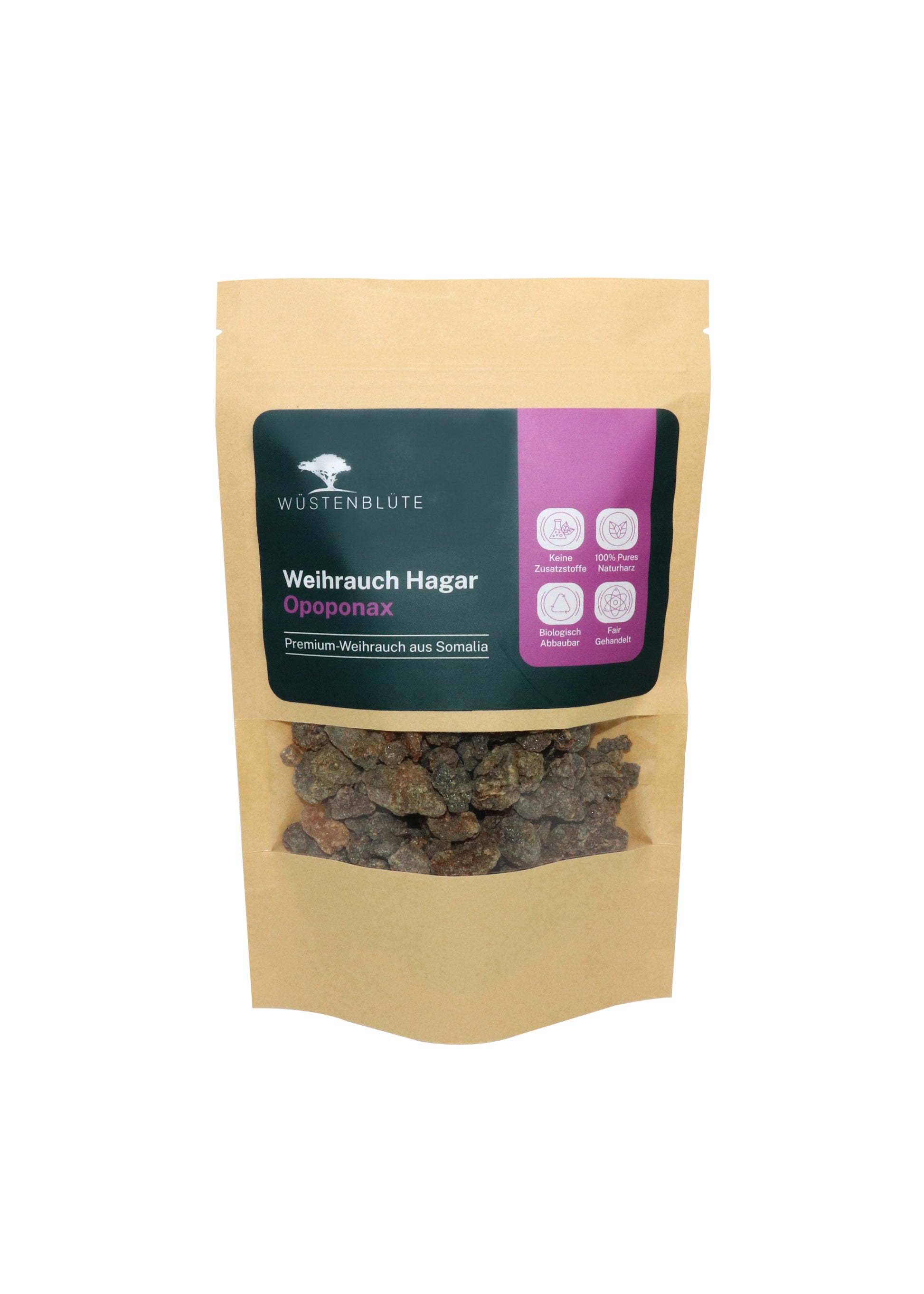 Der Weihrauch Hagar ist ein Muss für alle Räucherliebhaber. Das Harz wird oft als „Süße Myrrhe“ bezeichnet und besticht beim Verräuchern neben den klassischen balsamischen Nuancen mit einer gewissen Süße im Duft. Nicht nur im Geruch ist dieser Weihrauch mit Myrrhe zu vergleichen, auch die Effekte sind vergleichbar. So eignet sich Hagar-Weihrauch beispielsweise bestens, um Häuser zu räuchern. Der Rauch hat eine reinigende und entspannende Wirkung und stärkt Ihre Inspiration und Intuition.